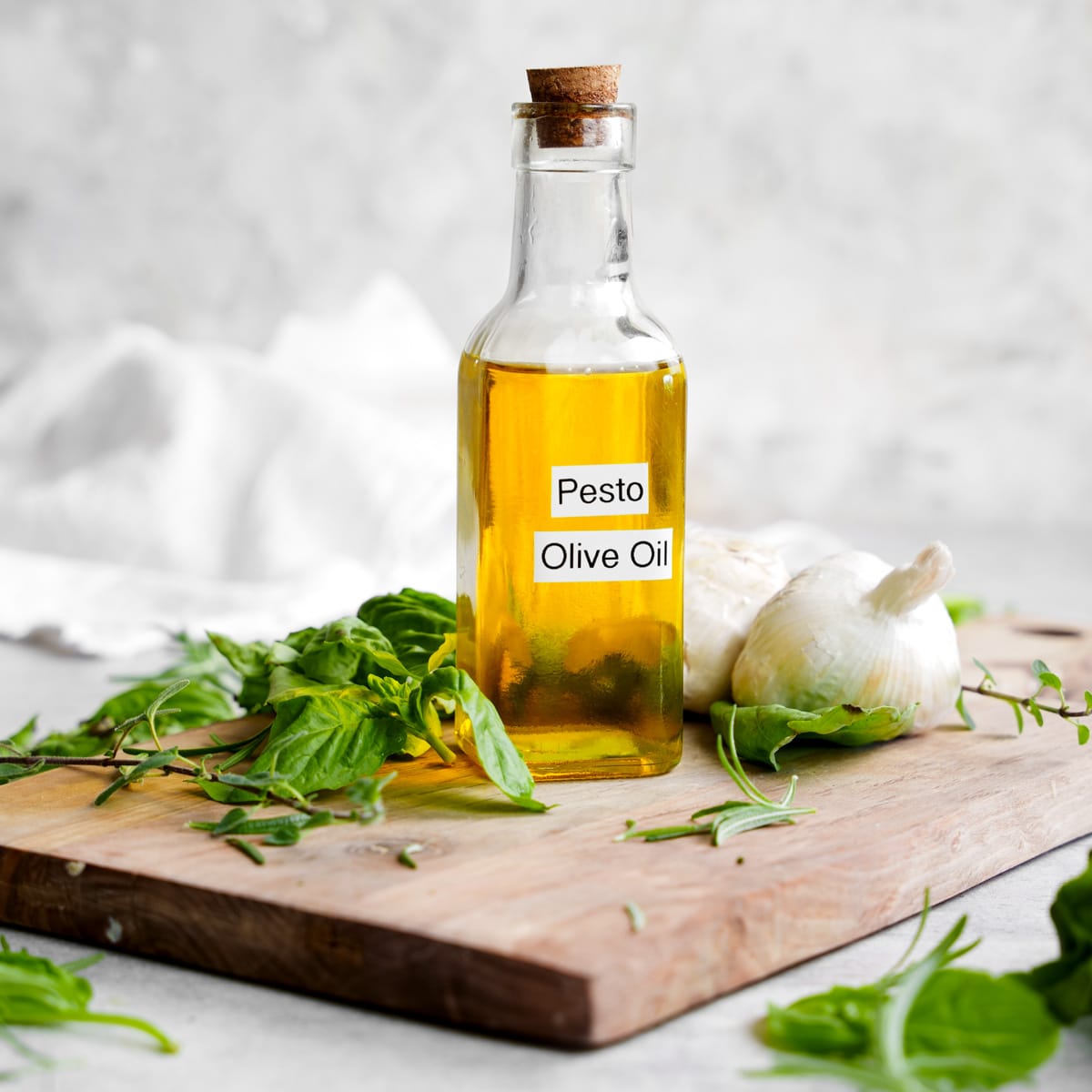 - Herbs - Any fresh herbs will work. This pesto olive oil recipe is great because you can use whatever herbs you like. I always recommend using sweet basil as the base of the flavor before adding any additional ingredients.