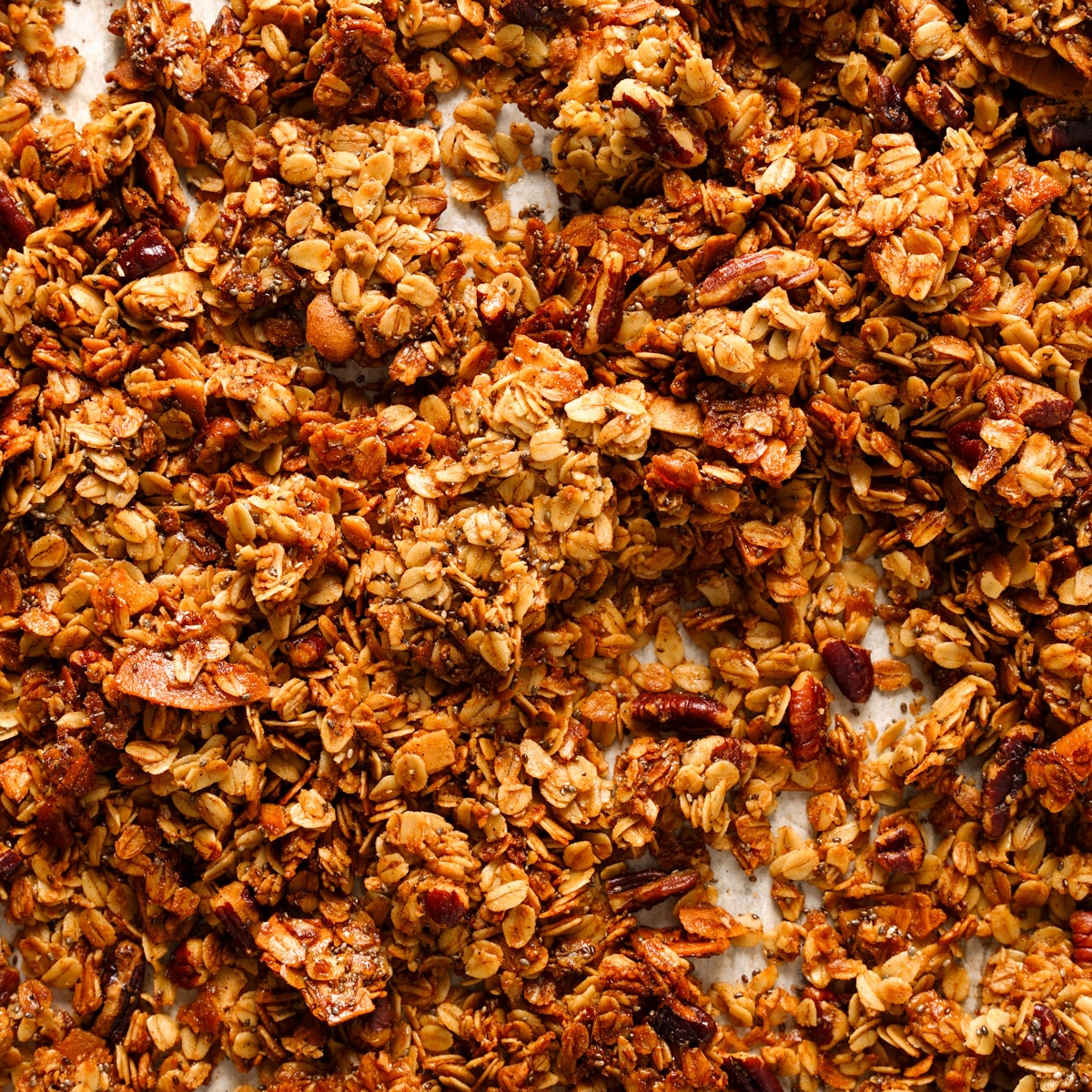 Store-bought granolas are often full of added sugars and preservatives, but this homemade version is healthy and so easy to make. I especially love the combination of coconut chips, chia seeds, cinnamon, and pecans wrapped in a healthy neutral fast like avocado oil-the flavors are amazing. I make large batches to keep on hand throughout the week because the granola disappears fast in my household. It smells irresistible when it comes out of the oven, but I urge you to resist. Trust me, let it cool to get the perfect clusters.